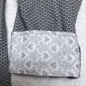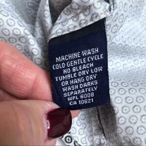 Today I'm listing a very handsome man's Panhandle Slim casual dress shirt. The shirt is grey and done in a darker gray geometric pattern. It's a long sleeve button up with button down collar and standard cuffs. Shirt is a man's size XL.
