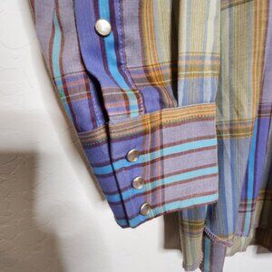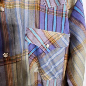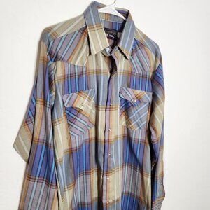 Add some vintage flair to your wardrobe with this Panhandle Slim men's button-down shirt. The shirt features a plaid pattern, long sleeves, and a collared neckline with a button-down closure. It comes in a size 16.5 and is made of a comfortable blend of polyester and cotton.