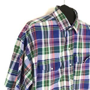 Panhandle Slim Plaid Button Up Shirt Men's XL Short Sleeve 100% Cotton Western