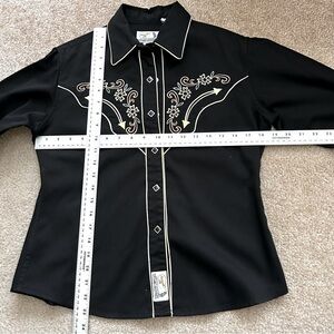 Good condition. Women’s Panhandle Slim Retro Western Wear, long sleeve, button down shirt. Features western yoke in front and back, front pockets, snap button closure and embroidery throughout.