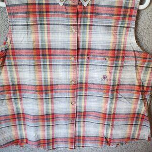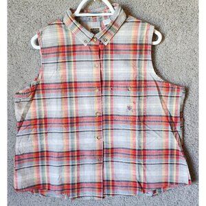 Panhandle Slim Rough Stock Women's Sleeveless Button Up Top Plaid Western Sz XL