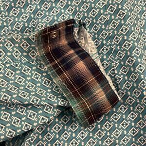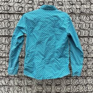 Panhandle Slim Roughstock teal turquoise southwestern Aztec embroidered sleeve pearl snap shirt