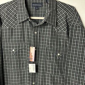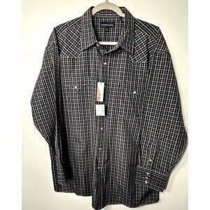 Panhandle Slim Shirt Men’s Sz 17/34 Black Plaid Pearl SnapTexas Western Cowboy