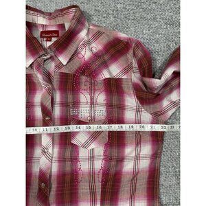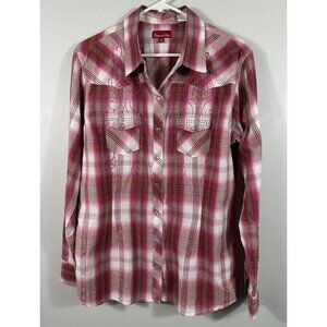 Panhandle Slim Shirt Womens Medium Pink Rhinestones Embroidered Western Cowgirl