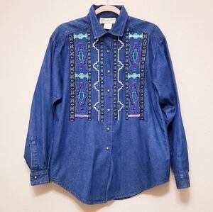 Panhandle Slim Tribal Western Denim Shirt M