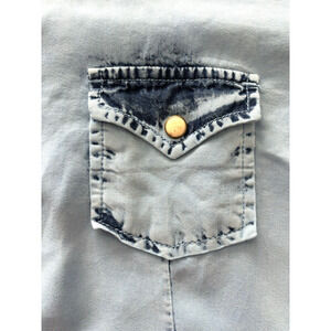 Panhandle Slim Western Pearl Snap Blue Chambray Acid Wash Rodeo Girl Medium