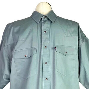 Panhandle Slim Men XL Canvas Snap Up Western Work Shirt Regular Cotton SS Sea Green