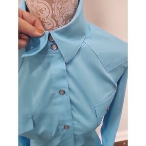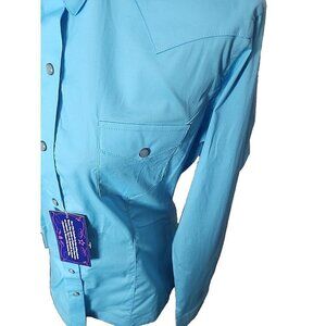 Panhandle Solid Pearlized Snap Turquoise Western Shirt Rodeo Women's Medium