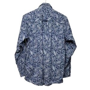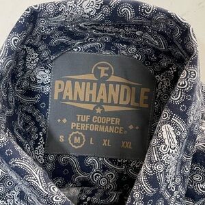 Panhandle Tuf Cooper Performance Blue White Paisley Print Button Up Shirt Size Medium!