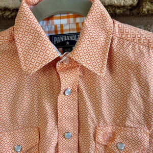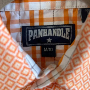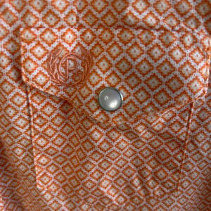 Panhandle Western Pearl Snap Boy’s Orange Patterned Short Sleeve Shirt Size M