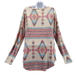 Panhandle Women Sz L Knit Long Sleeve Top Blouse Stretch Aztec Tribal Western