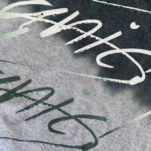 Good preowned condition with some wear/pilling under arms, typical wash wear elsewhere, a bit of wear/crackle in white graphics (see Pic #7 for exs), and minor wear/crackle in graphics elsewhere (see pics for exs).