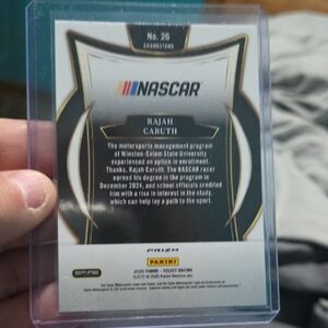 Panini racing card featuring NASCAR theme. Bold black and gold design. Ideal for enthusiasts.