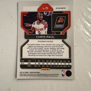Panini Prizm card featuring Chris Paul of the Phoenix Suns. White and orange design with team logo.