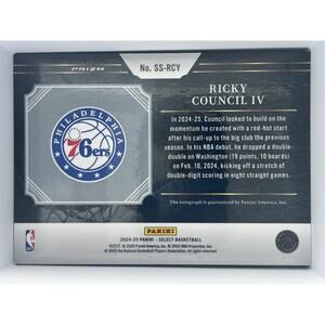 Panini Select Ricky Council IV Auto Rookie Card 76ers Signature Insert