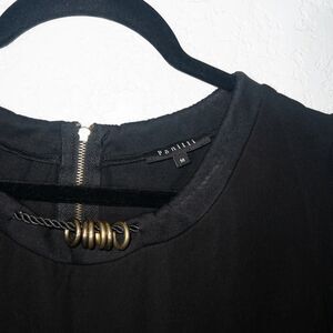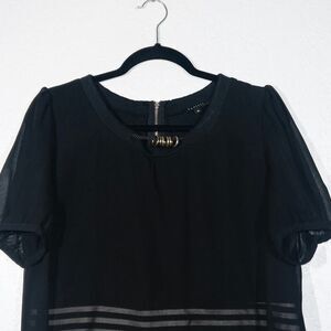 Panitti Black Overlay Striped A-Line Dress Size Medium