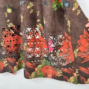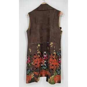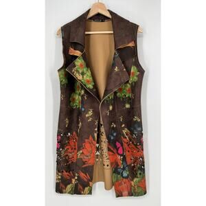 Paniz Floral Cutout Open Cardigan Vest Women M Brown Butterfly Faux Suede Vegan