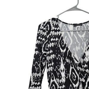 Women's Poly Stretch Geometric Print Wrap Midi Dress from Paniz.