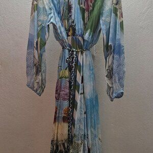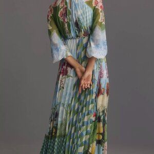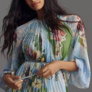 Pankaj & Nidhi Long-Sleeve Pleated Maxi Dress