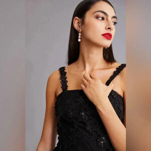 Pankaj & Nidhi Slim Lace Floral Mini Dress, Black, Size Medium