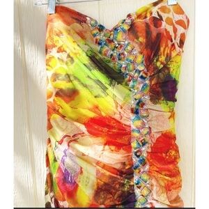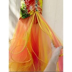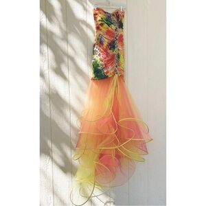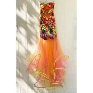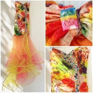 Panoply Sz 8 Long Strapless Formal Ruched Tulle Trumpet Gown Dress