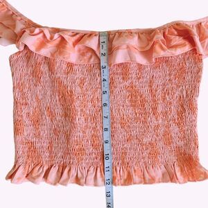 Pansee Women’s Ribbed Cropped Ruffle Trim Off The Shoulder Boho Top Size XL