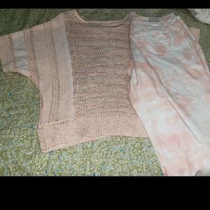 Pretty pink and white light jeans, New never worn only tried on. Length is 33/34.