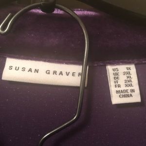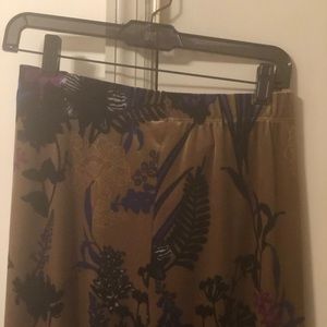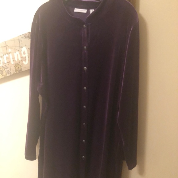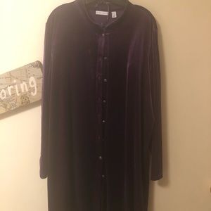 Soft velvet pant set. Multi purples, soft greens and touches of gold pants with an intriguing long solid purple velvet jacket. Feels great on the skin. Worn once. No spots, nicks or tags. In great condition.