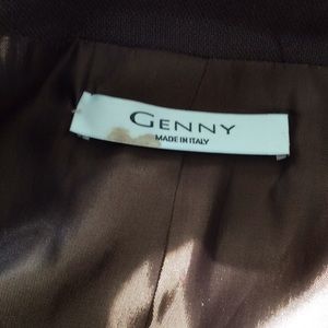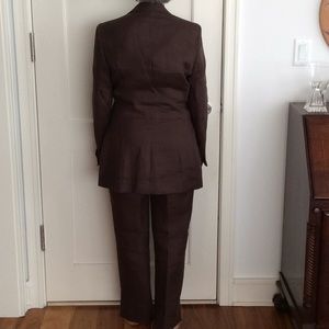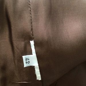 A pant suit by Italian designer Genny in brown.The pants are 38” long ( it has 3” hem if one wants to make it longer) the jacket is 29” long and has 2 pockets.