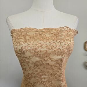 Pantagis Evenings True Vintage ILGWU 60s Coquette Gold Lace Strapless Dress 4 Union Tag Going Out Wedding Guest Party Holiday