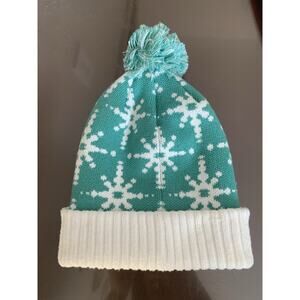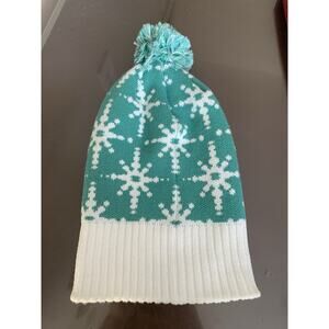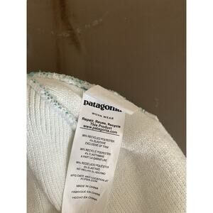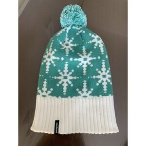 This Patagonia women's beanie in one size features a snowflake design in green. Made of polyester knit, it is ideal for winter, fall, and spring seasons. The beanie embodies a mix of nature, colorful, and classic themes, making it a versatile accessory for outdoor activities or casual wear.