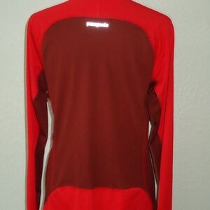 Pantagonia Women's Red Athleisure 1/4 Zip L/S Thumbhole Top Mesh Back Sz-M
