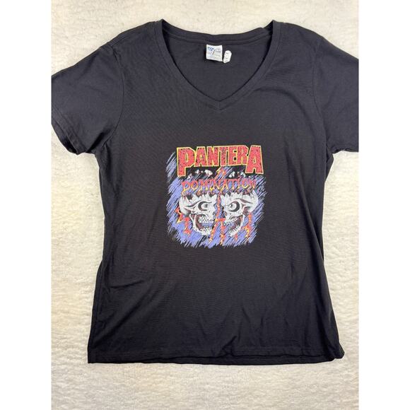 Pantera Domination Skulls V-Neck Tee | Women’s Large | Black Graphic Shirt NWOT