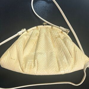 Vintage, snakeskin elegant cream shoulder bag is perfect for any occasion. Its sleek design and versatile color make it a must-have accessory. Carry as a clutch or crossbody