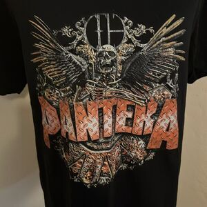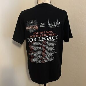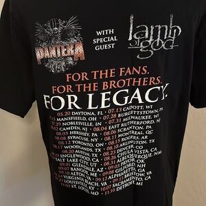 Pantera Lamb Of God Music Band Black Distressed Graphic Shirt, size large.