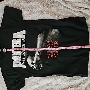Pre-loved. Black short sleeve t-shirt featuring Pantera graphics on front from the Vulgar Display of Power album cover art. Slim fitting size Small. All measurements are in photos.