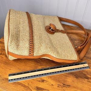 The Pantera Women's Tan Woven Genuine Leather Shoulder Crossbody Purse Shoulder Bag is a stylish and versatile accessory for women. Made of high-quality leather and straw materials, this medium-sized bag features a rectangular shape with a brown shoulder strap and gold hardware accents. The tan exterior color and beige lining add a touch of sophistication, while the inner and outer pockets provide practical storage options. Perfect for everyday use or to add a chic touch to any outfit, this Pantera bag combines fashion and functionality with its cross-body strap design.