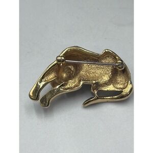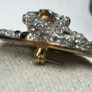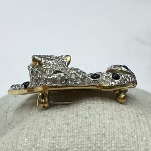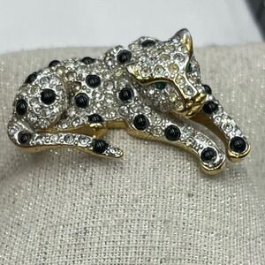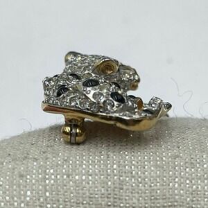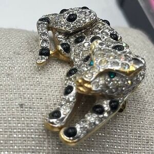 Panther Silver Gold Tone Rhinestones Black Cabochons Green Eye Brooch