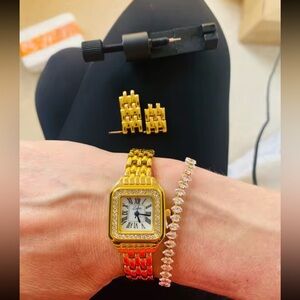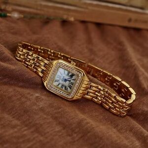 Panthere Classic Gold Crystal Stainless Steel Gold Watch
