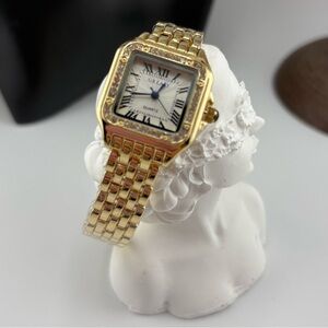 Elegant and timeless — this stunning Panthère-style stainless steel watch adds a touch of luxury to any look. Featuring a square Roman numeral dial, sparkling crystal accents, and a polished gold stainless steel band, it’s the perfect statement piece for both everyday wear and special occasions.