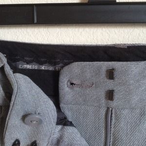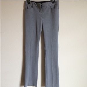 Light gray work pants/slim flit. I'm 5'3 and these fit perfect with a heel.