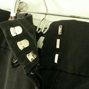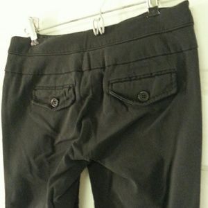 Stretchy grey pants. Worn. Pockets in back are not real.