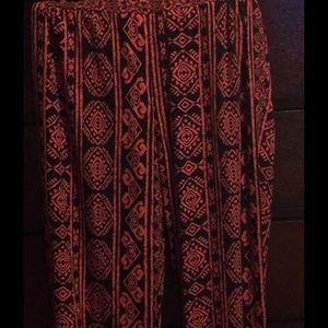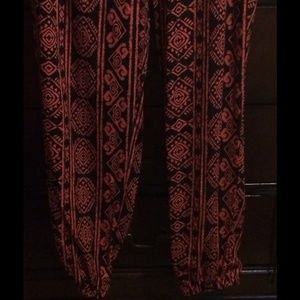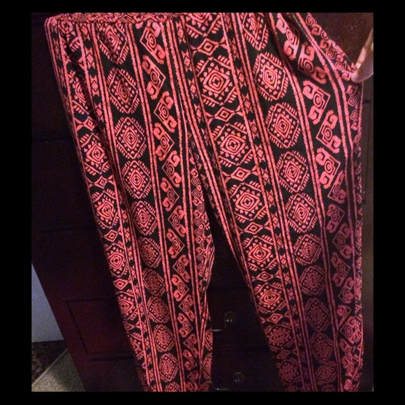 Loose pants but elastic around waste and ankles, pink and black, never worn and brand new condition!