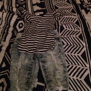 Brand new. Never worn. Has rips in them as designs.