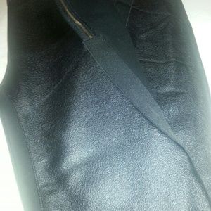 Black Faux leather pants  with knit material on sides and back also have a little slit on the side of each leg at bottom six small