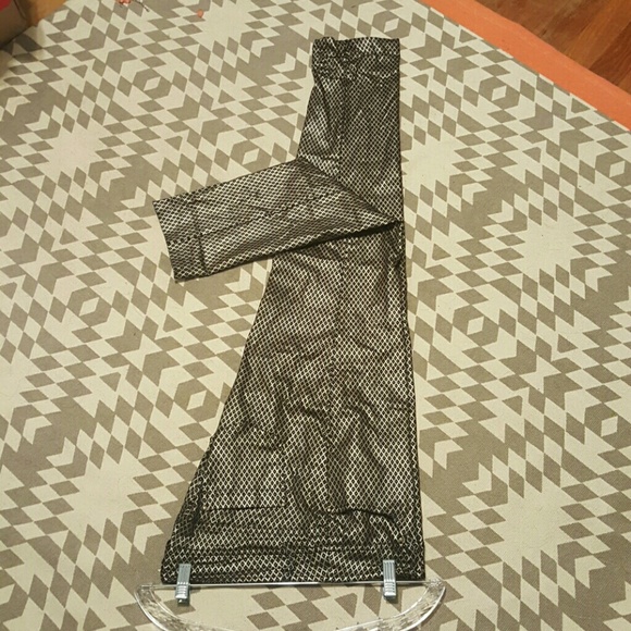 Metallic Gold skinny leg pants with diamond pattern. Stretch fit.