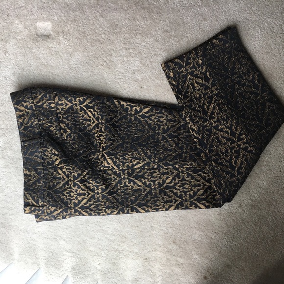 Lovely Ankle Pants; Navy Blue/Black w/ Gold Print and back pockets, Size 6 Great Condition