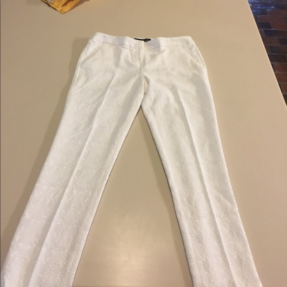 White lace textured low rise waist, ankle length pants