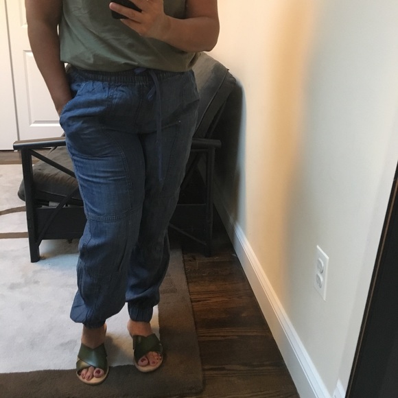 Jean Genie style pants. Wear with sandals or heels!!! Jazz them up with some high heels, a cute shirt or T-shirt, a statement necklace & a clutch and you have a totally different outfit. The black scalloped clutch in my closet goes nice with this outfit. Worn once