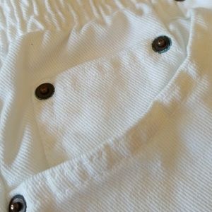 Wide stretch waist, pocket on both sides with small extra small pocket on right side as seen in last picture. Size 8 average. 100% Cotton NWOT